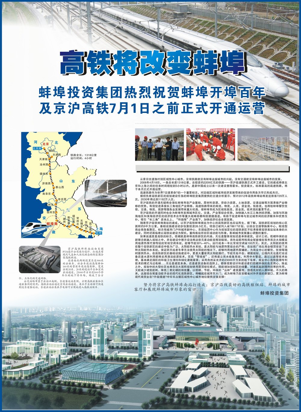 蚌投集團熱烈祝賀蚌埠開埠百年及京滬高鐵正式開通運營