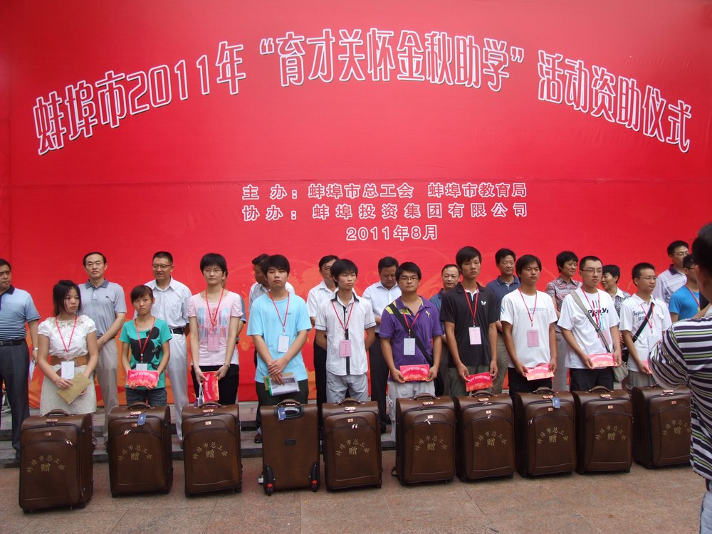 公司將本次全程助學活動定名為“蚌投集團·百名學子培養(yǎng)工程”,旨在幫助學子們順利完成學業(yè)。在大學四年期間,將對100名同學每人每年給予3000元資助,并歡迎大學生利用寒暑假來蚌投集團實習;對品學兼優(yōu)的畢業(yè)生,將擇優(yōu)招收到蚌投集團工作;對考上碩士、博士研究生的將繼續(xù)予以資助,并希望畢業(yè)后回到蚌投集團工作。