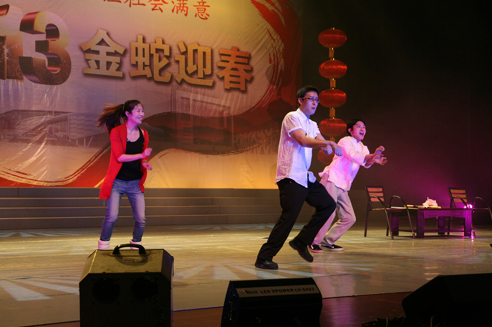 聯(lián)歡會(huì)還為大家奉上了雜技、小品、魔術(shù)、模仿秀等精彩紛呈的文藝節(jié)目,特邀著名笑星郭冬臨為大家表演,并穿插了幸運(yùn)抽獎(jiǎng)。聯(lián)歡會(huì)現(xiàn)場(chǎng)掌聲不斷,一片歡騰的氣氛。
